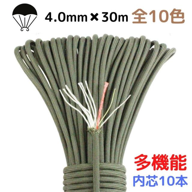 ファイヤーコード 多機能 パラコード 4mm 30m 10芯 ファイアーコード ファイアコード 火口 釣り糸 PEライン 綿糸 パラシュートコード ガイロープ テント ロープ 耐荷重 250kg キャンプ アウトドア PARACODE タープ リード アクセサリー ギア