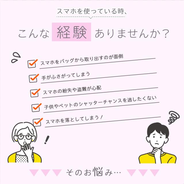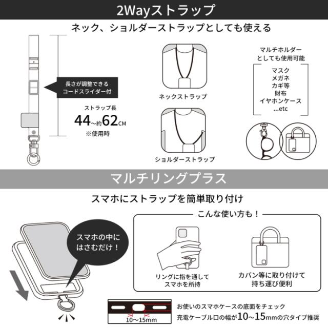 付属のショルダーストラップと組み合わせることで、スマホを首から下げることが可能です。