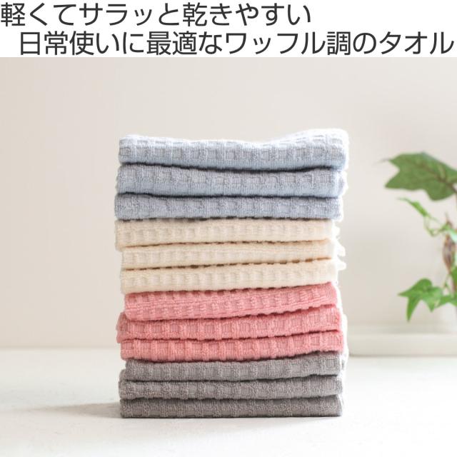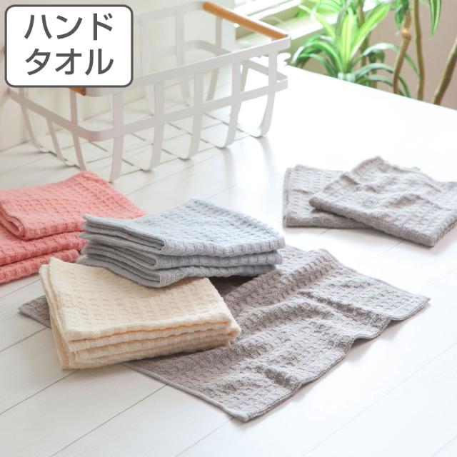 ハンドタオル 32×34cm ふんわりPLUS 無撚糸 ( タオル タオルハンカチ 手拭き 手洗い ワッフル調 綿100 3枚 デイリータオル 洗面タオル 吸水 お手拭き シンプル 無地 おしゃれ )
