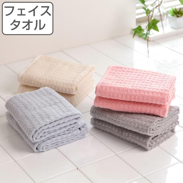 フェイスタオル 32×78cm ふんわりPLUS 無撚糸 ( 顔拭きタオル タオル 手拭きタオル ワッフル調 綿100 2枚 バスグッズ 浴用タオル 吸水 入浴 シンプル 無地 おしゃれ )