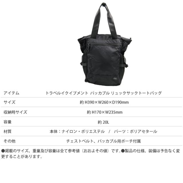 トラベルイクイップメント パッカブル リュックサックトートバッグ