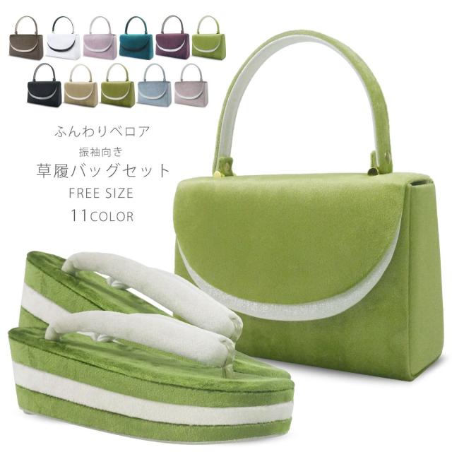 成人式 草履バッグセット 振袖 厚底 かぶせタイプ 選べる11色 バリエーション豊富 ハイヒール ワイン ブラウン ベロア スエード調 エナメル フェミニン 豪華 おしゃれ オシャレ 七五三 振袖 袴 【Lサイズ フリーサイズ 24cm 7cmヒール 3枚芯】バッグ 草履 セット 草履バック