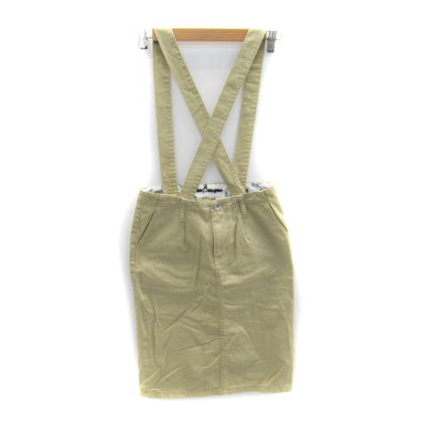 【中古】ロデオクラウンズ タイトスカート ひざ丈 サスペンダー付き バックスリット XS ベージュ ■MO レディース