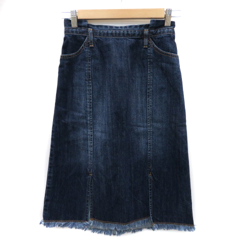 【中古】ルージュディアマン フレアスカート デニムスカート ミモレ丈 スリット フリンジ 36 インディゴ レディース
