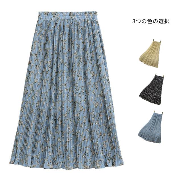 花柄 レディース キレイめ プリーツ ミモレ丈 シフォンスカート プリーツスカート お洒落 春夏 花柄 体型カバー シフォン ウエストゴム Aライン 着痩せ ロングスカート ボトムス 大人 フェミニン 送料無料