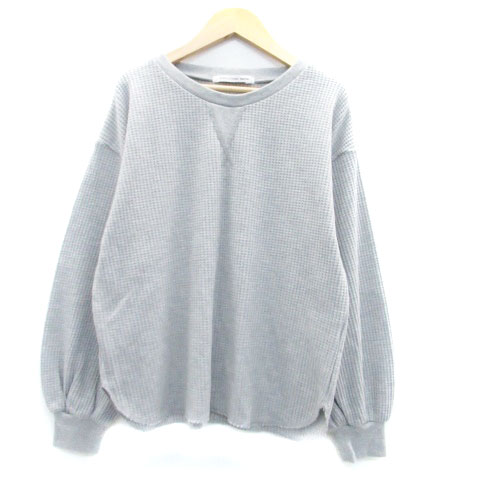 【中古】レイカズン Ray cassin カットソー ラウンドネック 長袖 無地 ワッフル F グレー /HO42 レディース