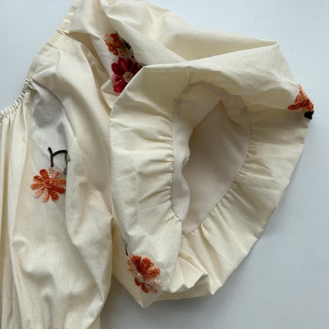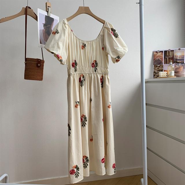 aラインワンピース レディース 夏 半袖 パフスリーブ ハイウエスト 花柄 刺? 低身長 カジュアル かわいい きれいめ