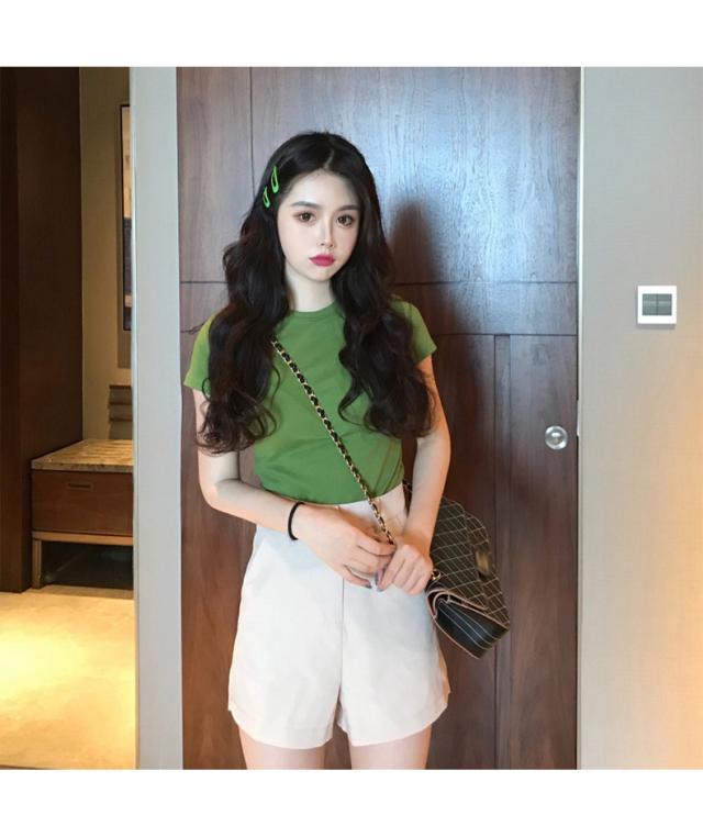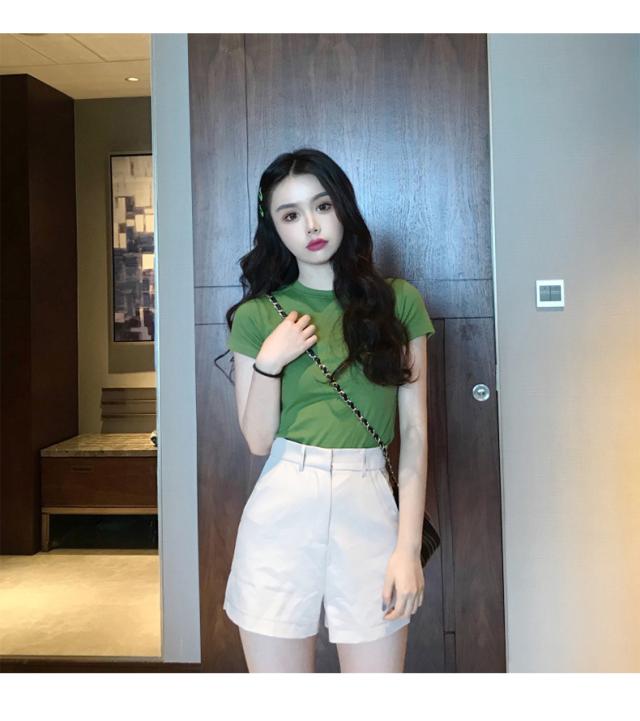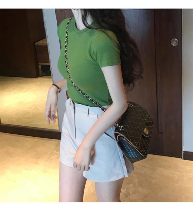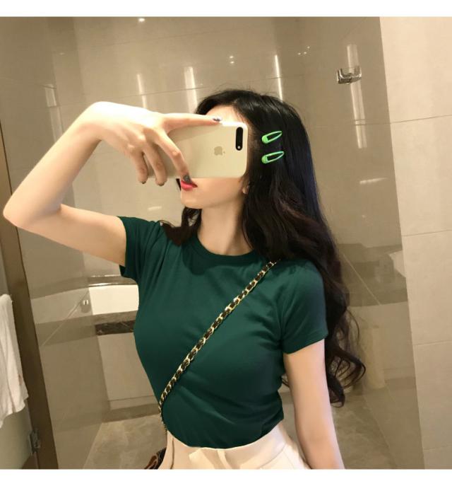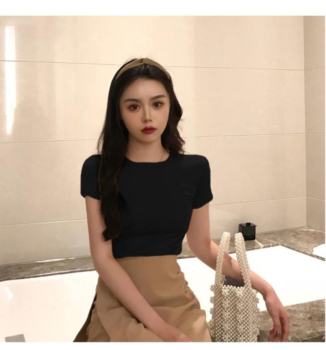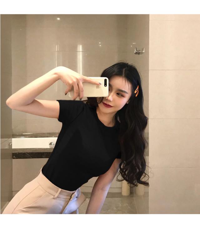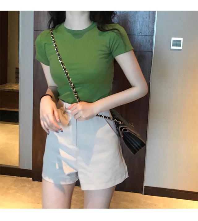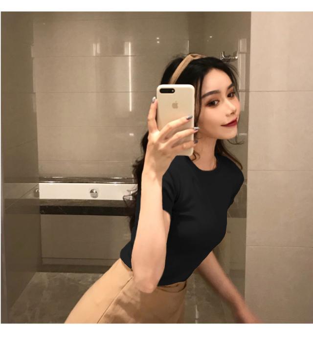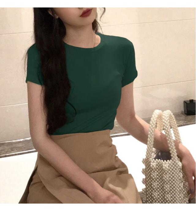 送料無料 Tシャツ レディース 半袖 カットソー ぴったり 無地 伸縮性 ストレッチ 美ボディライン 透けない 厚手 Tシャツ タイト スリム インナー