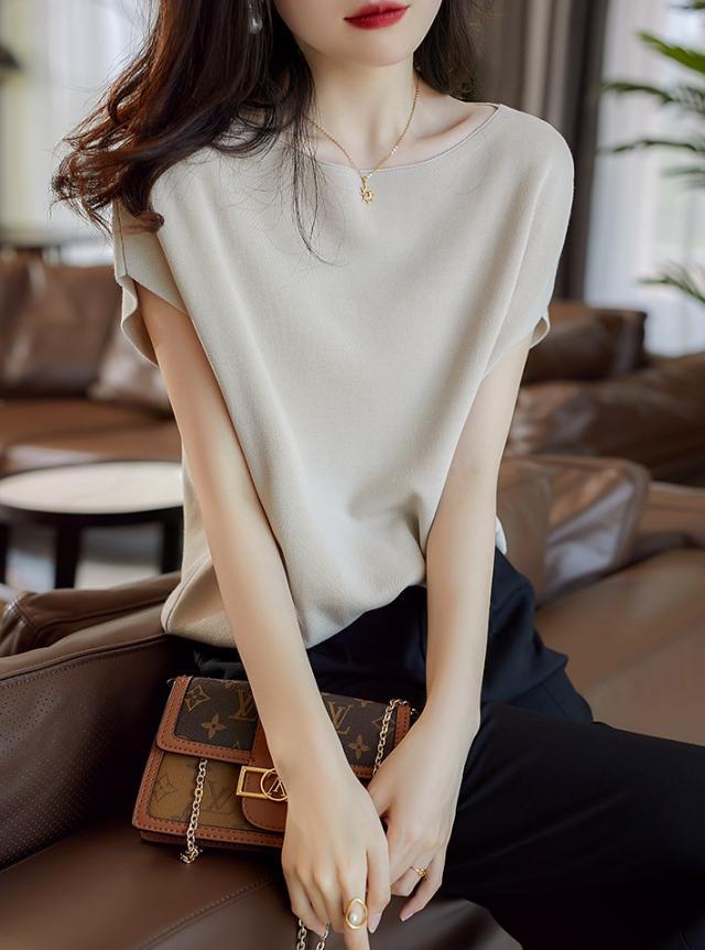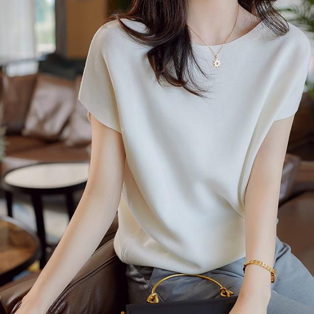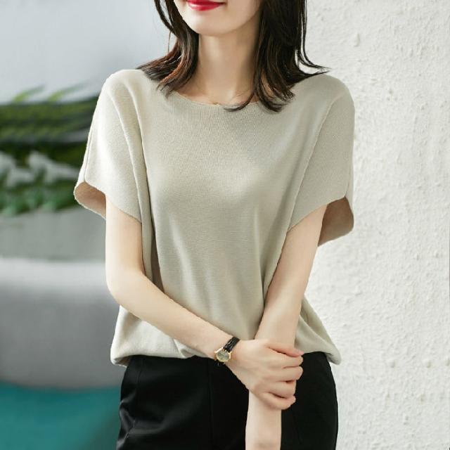 ブラウス フレアスリーブ レディース ニット ニットブラウス 半袖 Tシャツ アイスシルクシャツ 半袖シャツ 半袖カットソー 無地 シンプル トップス 夏 送料無料