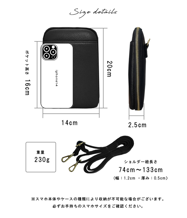 ▼ スマホポーチ シボ加工のショルダーバッグ ▼