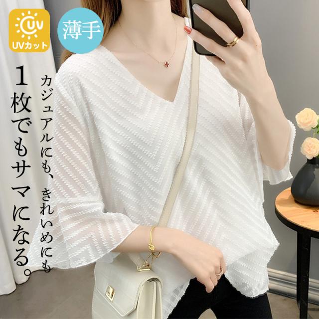 ★キーワード: ブラウス レディース シャツ トップス 七分袖 半袖 切り替え 普段着 カジュアル 通勤 春 夏 秋 きれいめ オーバーサイズ シンプル 柔らか vネック クルーネック tシャツ ビジネス 日焼け止め 通気 接触冷感 吸汗 速乾 春コーデ 夏コーデ 20代 30代 40代 50代 韓国 デート お出かけ