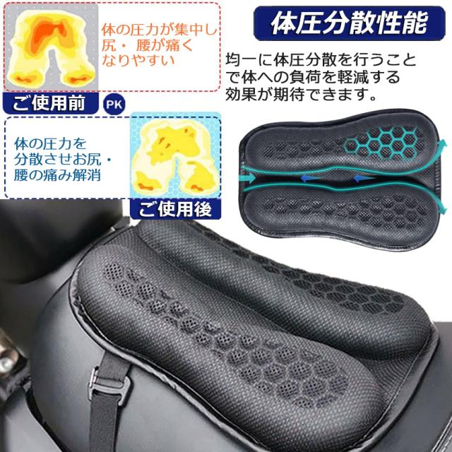 バイク シート クッション ゲルクッション ゲルシートカバー 3D メッシュシートカバー 四季通用 通気 衝撃吸収 人間工学 断熱 日焼け止め 濡れ防止 換気 バイク シートカバー スクーター用 メッシュシートカバー 汎用品 オートバイシートカバー