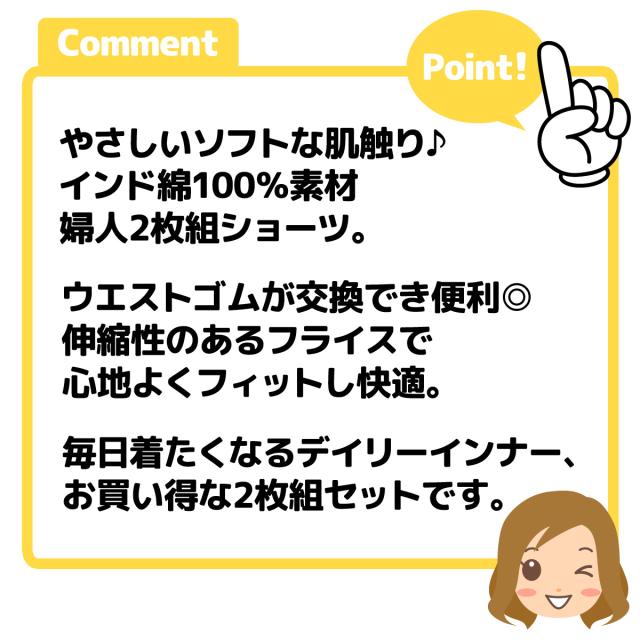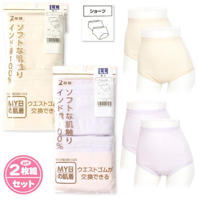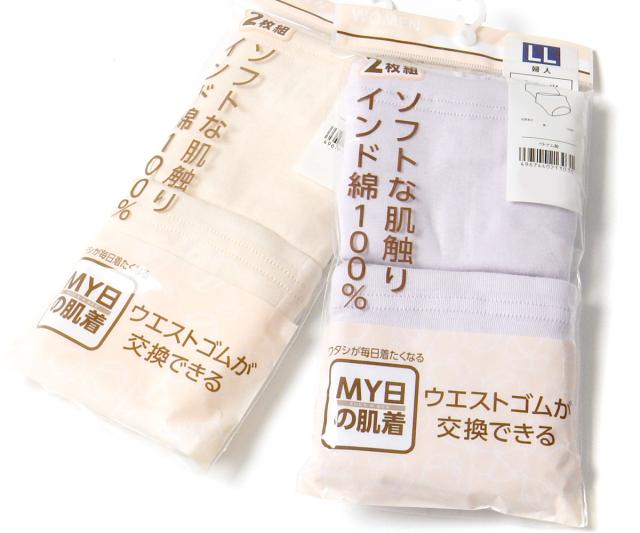 【送料無料】2枚組セット 婦人 レディース ショーツ インド綿100% ウエストゴム交換 フライス 下着 M L LL 3L yg-1865【メール便対応】