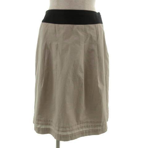 【中古】インディヴィ INDIVI スカート 台形 ミディ丈 日本製 半光沢 配色 コットン混 グレージュ ブラック 黒 38