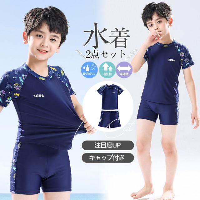 【~4/24まで P10倍+限定クーポン】 水着 キッズ 男の子 ラッシュガード 2点セット セットアップ ウェットスーツ サーフィン セパレート 速乾 半袖 UVカット 子