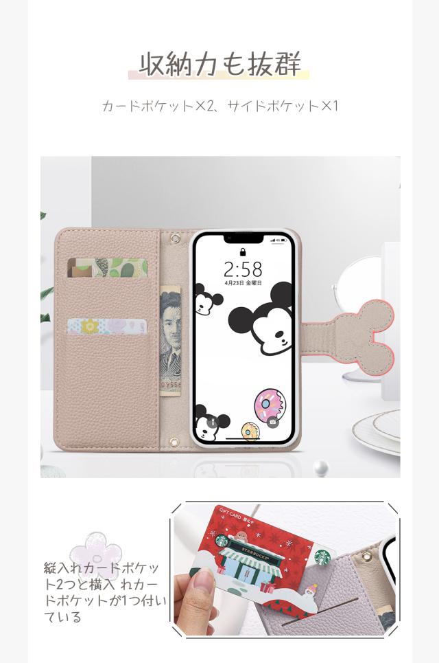 内側には三つのカードポケット付き、カード、名刺や定期券などを入れて活用することができ、大変便利な可愛い手帳型ケースです。耐衝撃