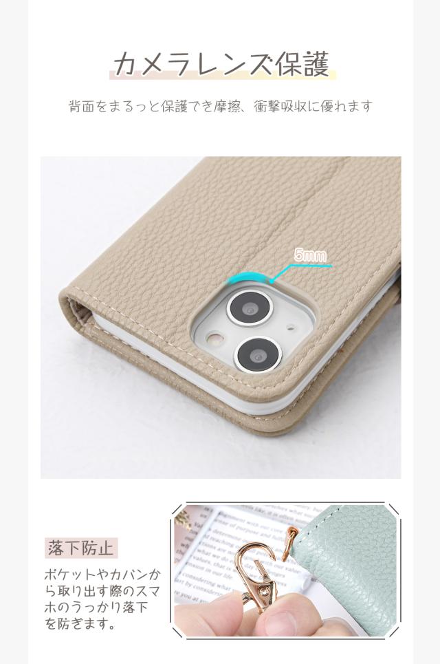 耐熱性と柔軟性を誇るPUレザーから作られていて、滑りにくく、落下時の衝撃を効率よく吸収するようにケースの各コーナー内側が設計されています。手帳型ならではの全面保護機能でディスプレイはもちろん、背面もしっかりガードします。さらにカメラレンズ保護構造でスマホ本体を傷から360度しっかり保護してくれます画面保護