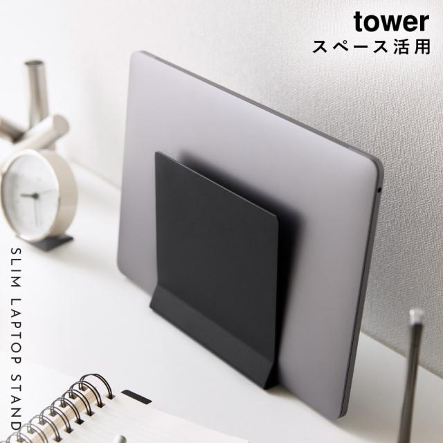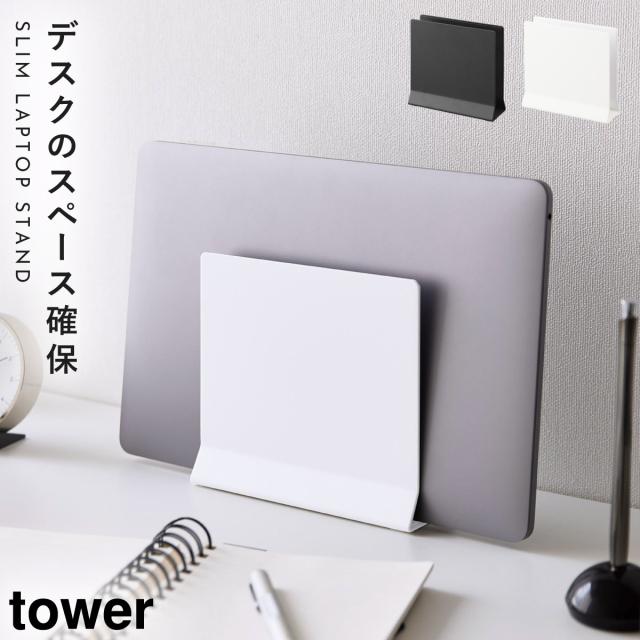 ノートパソコンスタンド 縦置き 縦置き収納 ノートパソコン pc パソコン スタンド スリム タワー tower 山崎実業 ブラック ホワイト 白 黒 シンプル スリムノートパソコンスタンド タワー