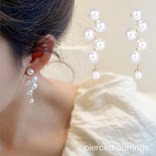 連なったフェイクパールがとっても上品なデザインでフォーマルシーンにぴったりなピアスです。