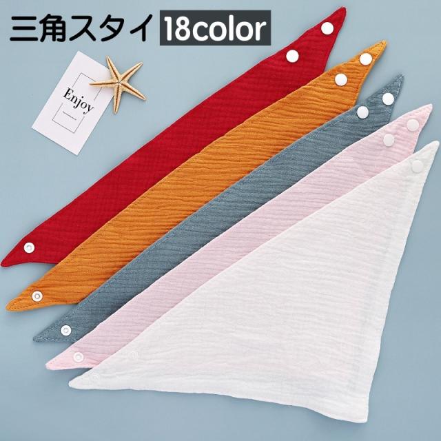 スタイ よだれかけ ビブ ガーゼ ベビー 赤ちゃん 三角スタイ スナップボタン 着脱簡単 よだれカバー お食事 無地 シンプル