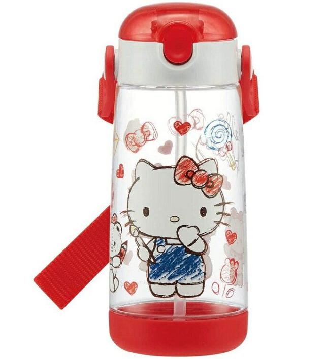 ハローキティ ワンプッシュストローボトル 480ml スケッチ 水筒 スケーター お子様用水筒 ストローボトル