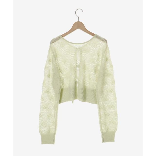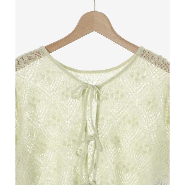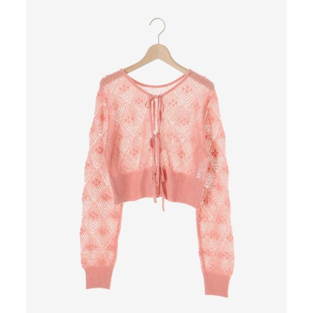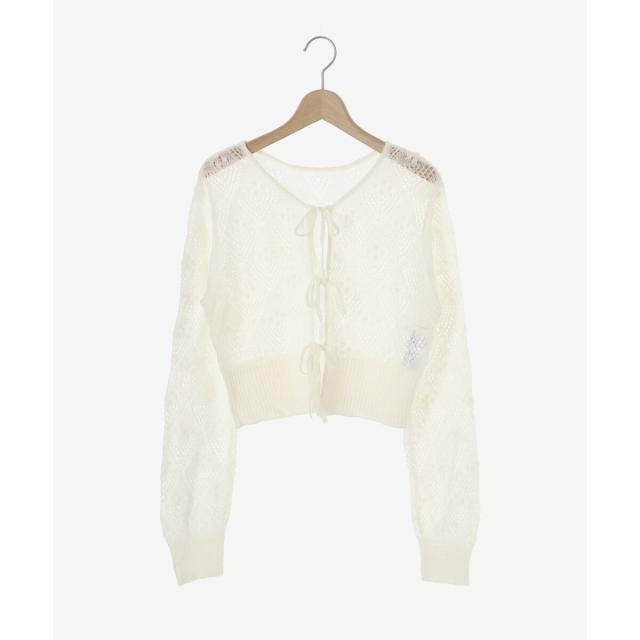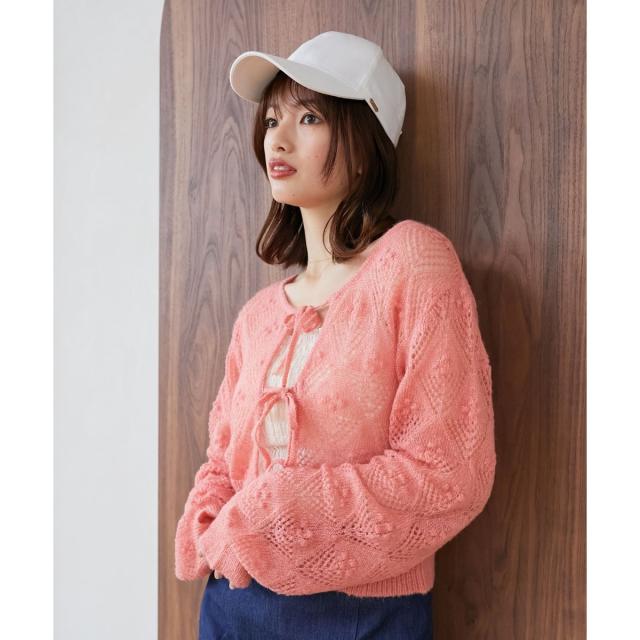 リボンディティールがトレンドムードたっぷり!大人ガーリーな透かし柄カーディガン。