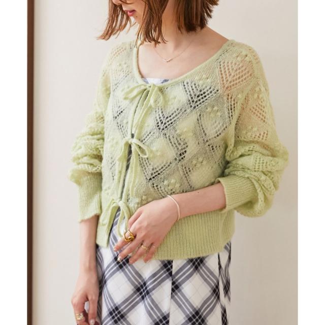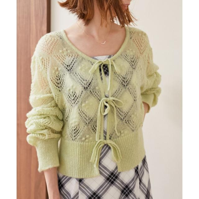 フロントリボン透かしカーディガン