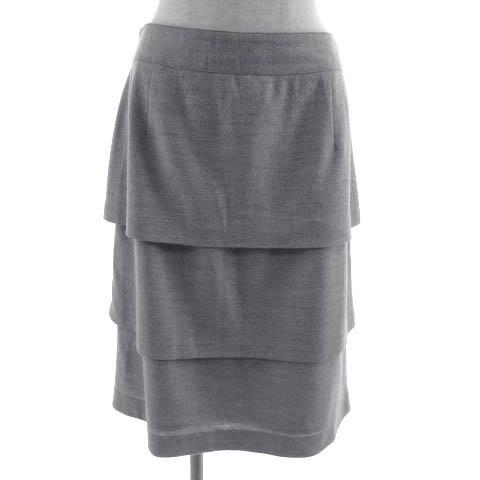 【中古】ニューヨーカー NEWYORKER スカート タイト ティアード ミディ丈 ウール グレー 70-95 レディース