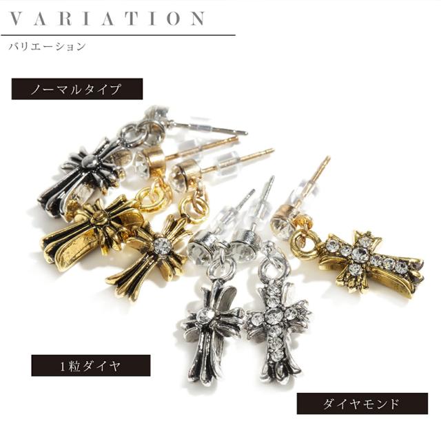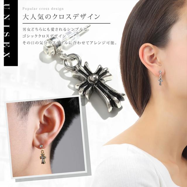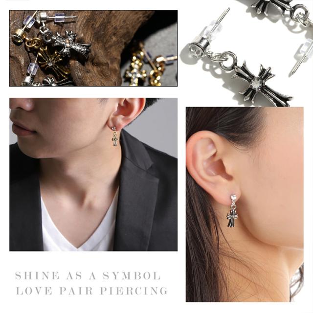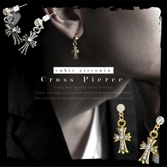備考:【両耳ピアス】クロス型の高級感があるピアスです。ユニセックス(男女兼用タイプ)。季節や服装を問わず、いつも耳元をスタイリッシュに飾ってくれます。