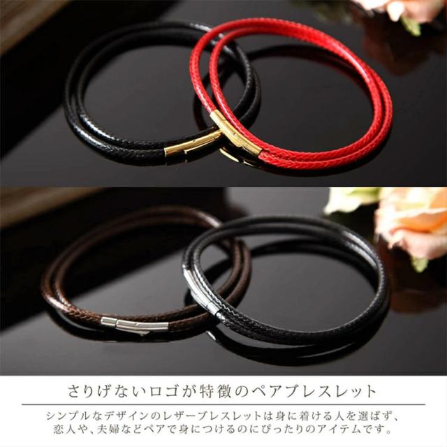 ペアブレスレット つけっぱなし レザーブレスレット アンクレット メンズ レディース アレルギー対応 革紐 ステンレス シンプル 送料無料 カップルお揃い