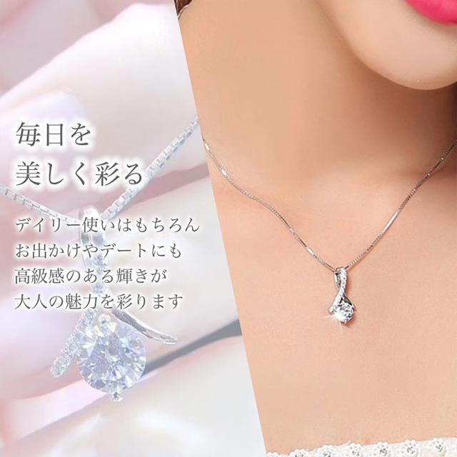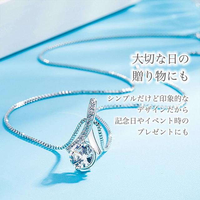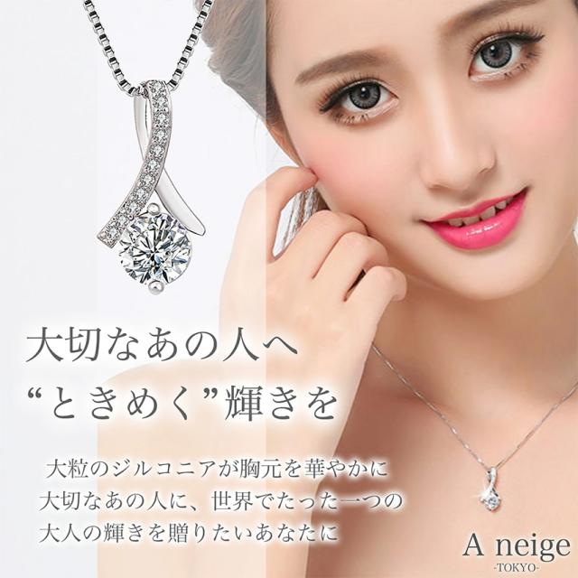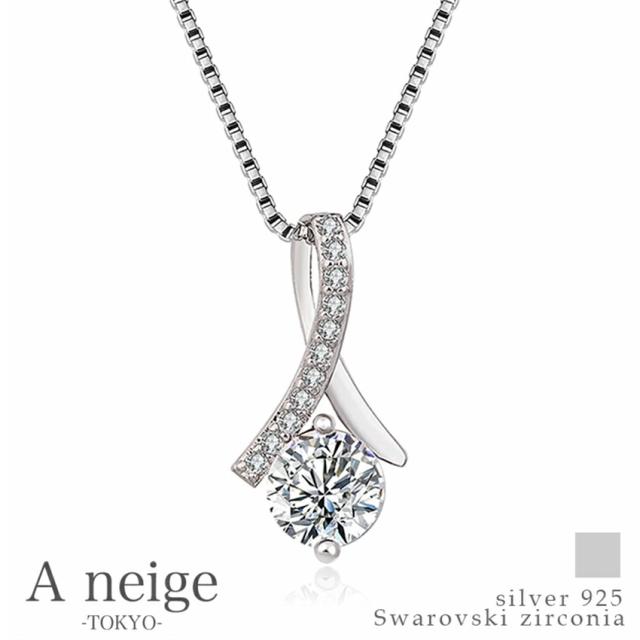 A neige ネックレス レディース 金属アレルギー 対応 レディースネックレス リボンネックレス スワロフスキー ジルコニアネックレス ペンダント シルバー925 ベネチアンチェーン50cm 誕生日プレゼント