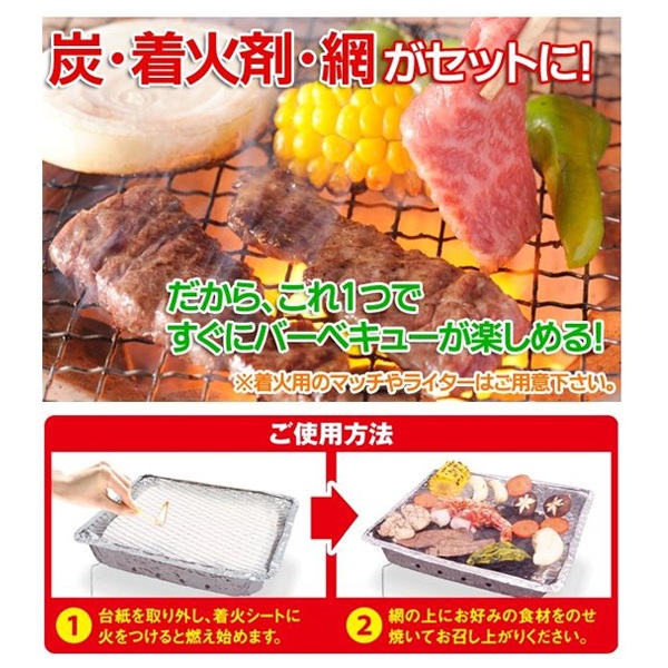 | 炭・着火剤・網付き インスタント BBQグリルセット |