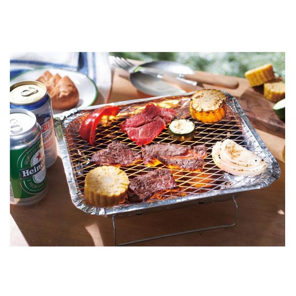 | 庭で手軽にバーベキュー、ピクニックやキャンプ、釣りなどのレジャーのお供に! キャンプやアウトドアを始めたい方、初心者の方にもおすすめ! これ一つですぐに焼ける!片付けも簡単♪ 本格的な炭火のBBQを手軽にお楽しみ頂けます。 炭・着火剤・網がセットになって面倒な準備も、後片付けも不要。 だれでも簡単にバーべーキューが楽しめるインスタントBBQセットです。 燃焼時間は約1時間。 火起こしに必要な着火剤や燃料・網が付属している少人数用のインスタントグリルセットです。 コンパクトにまとまっているから持ち運びも手軽で、どこでもすぐに使うことができます。 災害などの非常時に防災グッズに備えておくのも安心です。 |