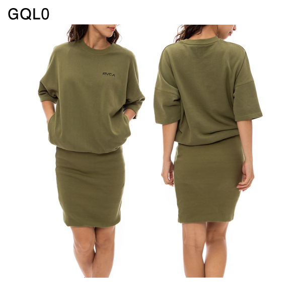 【RVCA】ルーカ 2023春夏 レディース SMALL RVCA WDR ワンピース スウェット 半袖 Tシャツ ミニ丈
