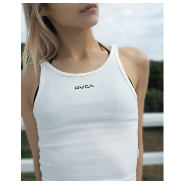| | フロントにRVCAロゴを施したSMALL RVCA SLIDE TANK。首周りがきれいに見えるスクープネックで、程よく身体とフィットするシルエットを採用。シャツやカーディガンなど羽織り物との相性もグッド。 |