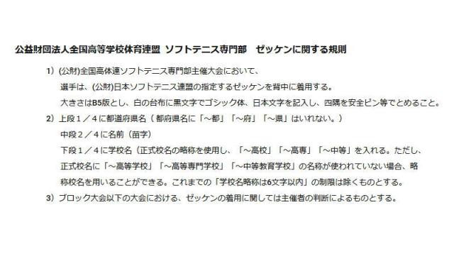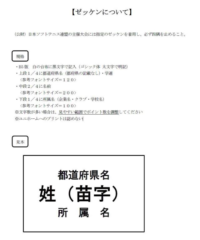 公益財団法人 日本ソフトテニス連盟 ゼッケンに関する規則