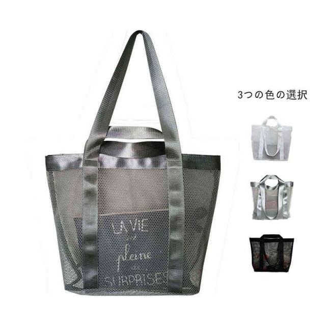 送料無料 メッシュバッグ スパバッグ 温泉バッグ クリアバッグ ビーチバッグ プールバッグ メッシュ 温泉 バッグ バック グレー ブラック ホワイト