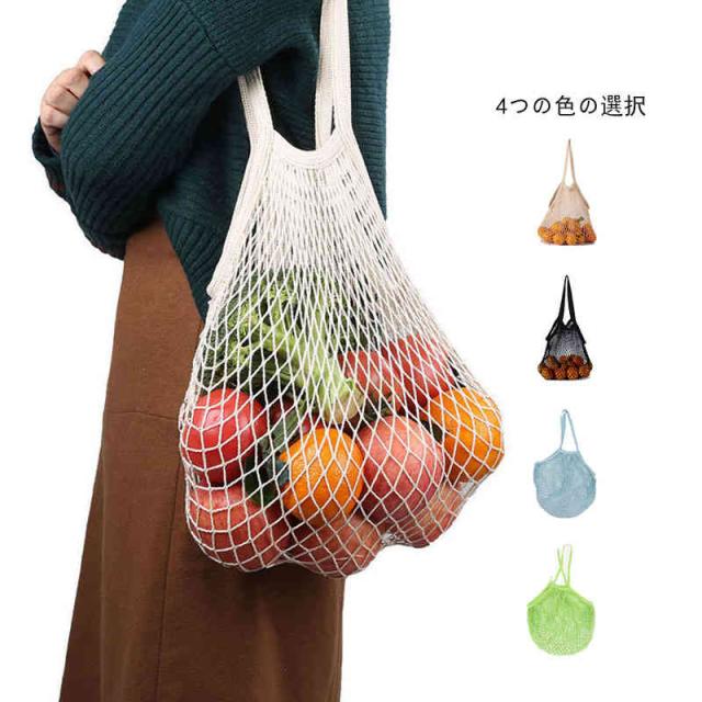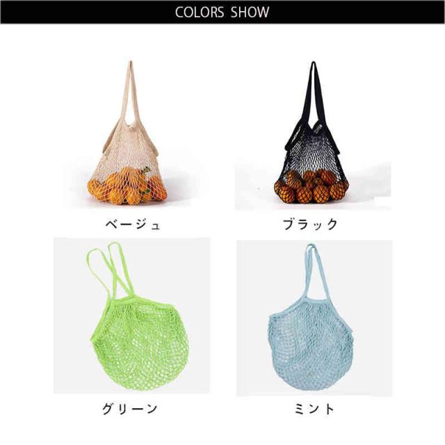 送料無料 ネットバッグ メッシュバッグ エコバッグ コットンネットバッグ 収納袋 おもちゃ 収納 35*35*13cm ベージュ ブラック パープル グリーン ミント