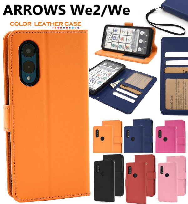 arrows we f-51b ケース 手帳型 ストラップ付き 耐衝撃 arrowswe f-51bケース fcg01 a101fc f51b 手帳型ケース アローズwe カバー スマホケース 財布 sc56c カード収納 かわいい 手帳ケース ストラップホール 可愛い ピンク ブラック ブルー オレンジ ネイビー 黒 青