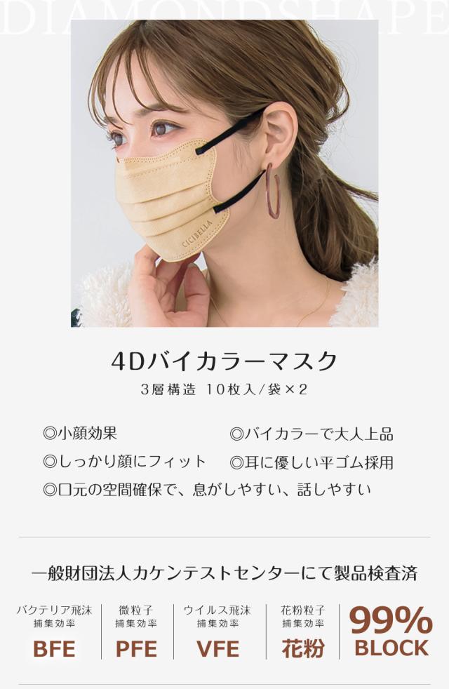【春新作】cicibella マスク 不織布 立体 4Dマスク 立体マスク 不織布マスク 小顔マスク バイカラーマスク 3Dマスク