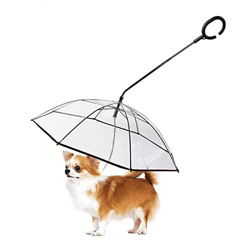 Lesypet 犬用傘 ペット雨具 C型手元 梅雨対策 散歩用透明傘 折り畳み式リード傘 小型犬中型犬に適用