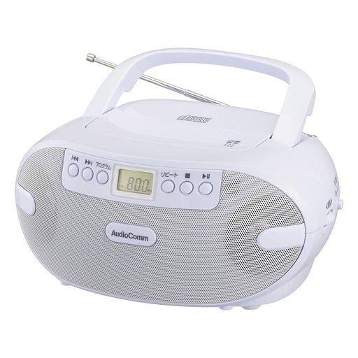 ◆ワイドFM(FM補完放送)対応 ◆CDプログラム(最大20曲まで)・リピート・ランダム再生機能付き ◆CD/選局液晶表示 ◆ヘッドホン出力端子、外部音声入力端子付き ◆キャリーハンドル付き ◆FMロッドアンテナ付き ◆本体カラーはホワイト