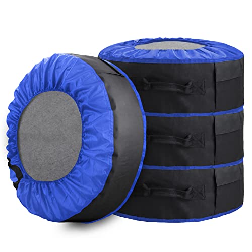 ZATOOTO タイヤカバー 4本 タイヤ 収納 保管カバー フェルトパッド4枚付き タイヤトート タイヤバッグ 取手付き 持ち運び便利 車用 (15/16/17/18/19インチ) ブルー LYLTZ05-BL