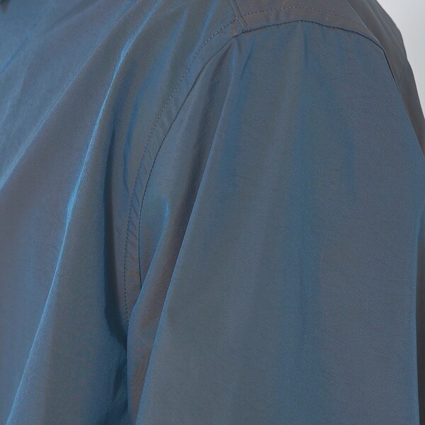 トラッドなコート素材によく使用される玉虫カラーですが、合繊にすることでシャープなイメージと高級感を演出。