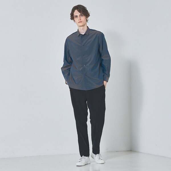 シャツの軽快さにアウターの重厚感を合わせたアイテム。
