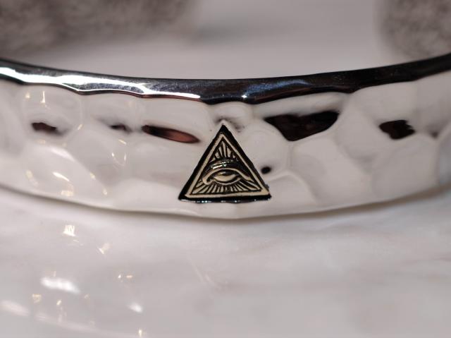 中心から少し右側にプロビデンスの目が真鍮で埋め込まれています。