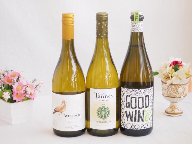 産地別白ワインシャルドネ3本セット(ビーニャ デル デルスール(チリ) レ タンヌ オクシタン(フランス) グッドワイン スパークリング(オーストラリア)) 750ml×3本