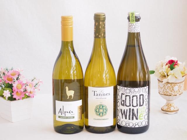 産地別白ワインシャルドネ3本セット(サンタ ヘレナ アルパカ(チリ) レ タンヌ オクシタン(フランス) グッドワイン スパークリング(オーストラリア)) 750ml×3本