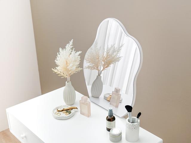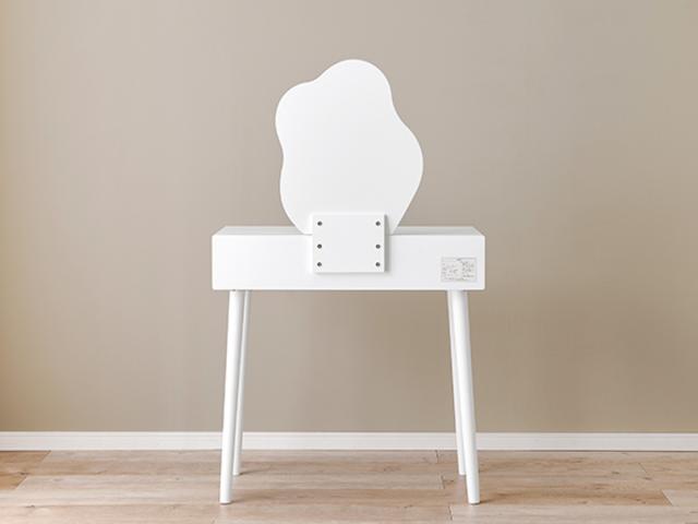 ホワイト×ウェーブミラーのシンプルなドレッサーです。白を基調とした姫系のお部屋や韓国風インテリアにも合う、大人可愛いデザインです。
