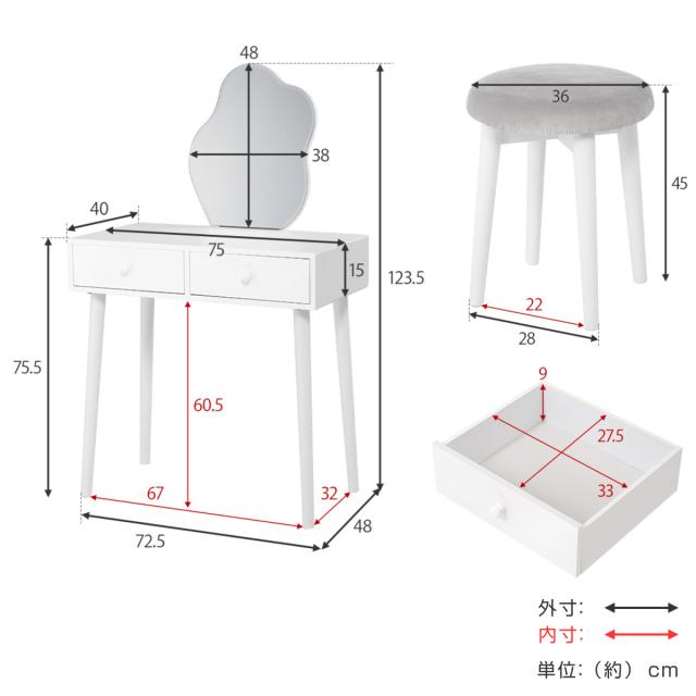 | サイズ | 約 幅75×奥行48×高さ123.5(cm) スツール:約 幅36×奥行36×高さ45(cm) |